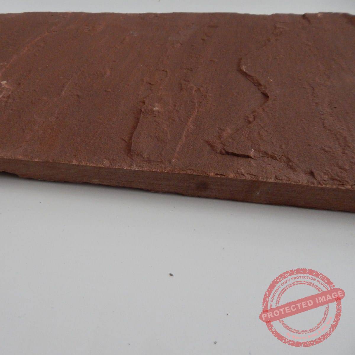 Chocolate sandstone patio paving tiles, cobbles, steps, palisades, curbstone, block steps, pool coping, and garden stepping stones are available in all sizes, thicknesses, shapes, and finishes including natural, sawn, sandblasted, honed, polished, brushed, bush-hammered, and tumbled, with edge cutting options like hand-cut, machine-cut, and bull-nosed.