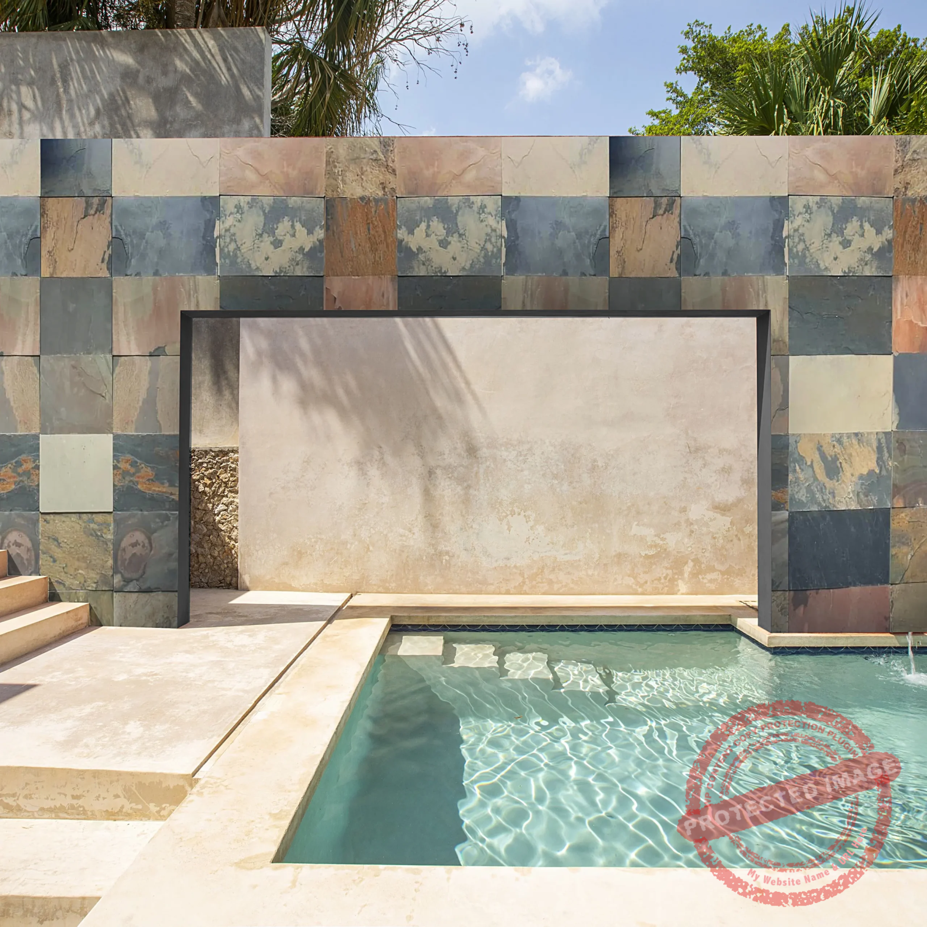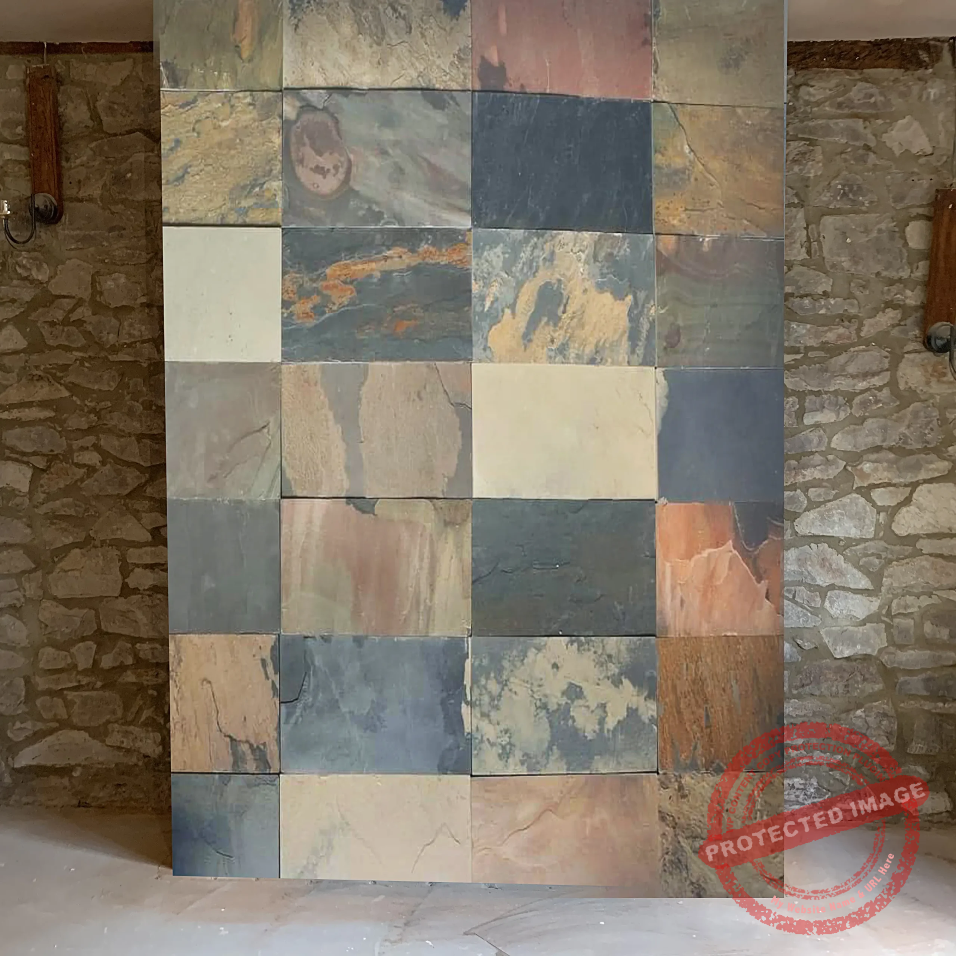Indian Natural Stones is a top Multicolor Slate Manufacturer, Supplier, and Exporter from India, serving the USA, Canada, Mexico, the Caribbean, and beyond. Our Multicolor slate is offered in natural, sawn, calibrated, tumble-antique, sandblasted, polished, honed, and flamed finishes, available as tiles, slabs, mosaics, ledger panels, and flexible slate veneers.