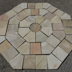 Circular stones of different diameters, that can be plain or carved with various designs likes circle, sun circles, octagonal etc. can be supplied on order. We supply matching Indian sandstone paving and setts to edge your circle pavers.